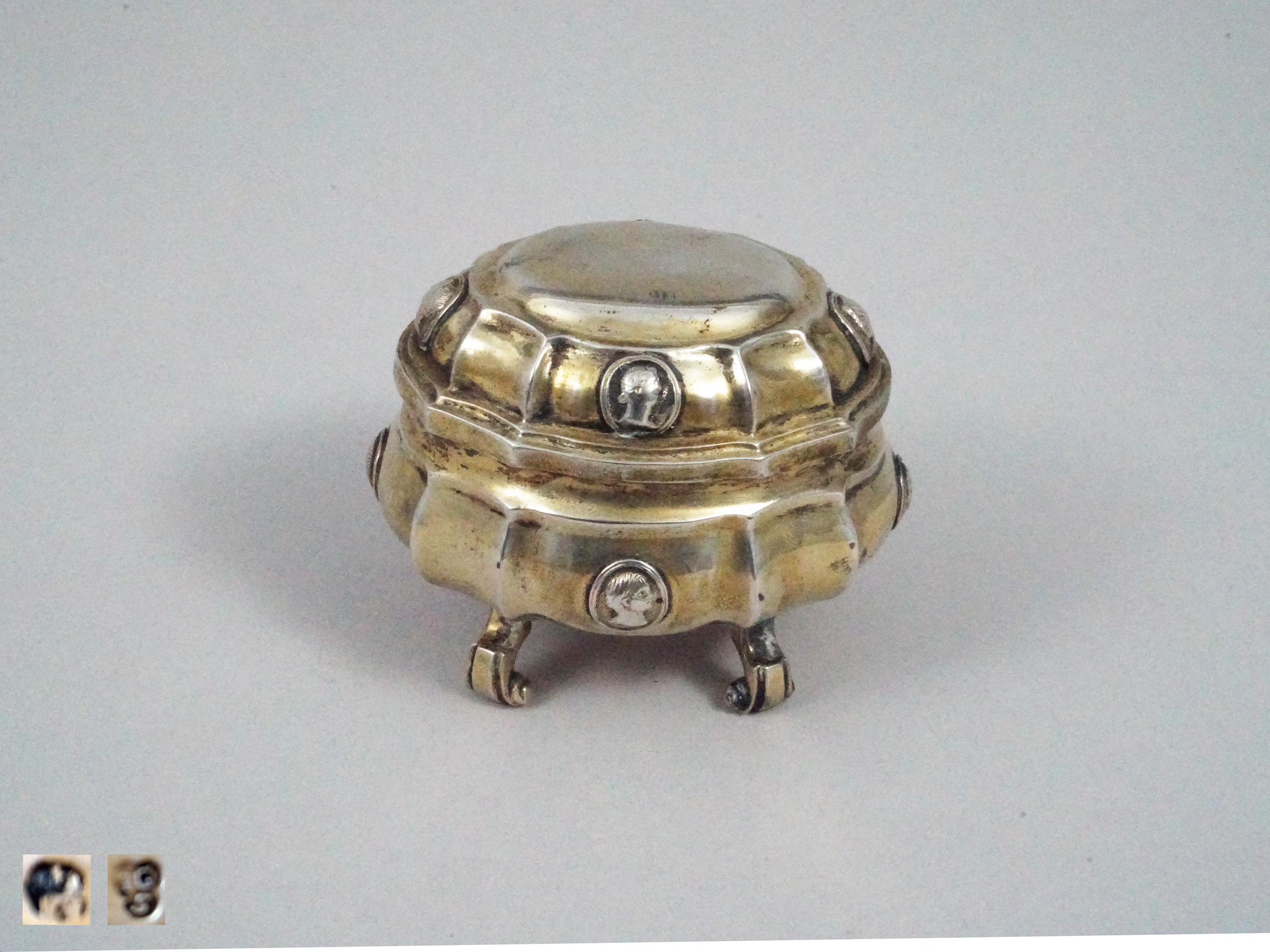 German silver soap box, silver, fully gilt, produced in Augsburg during the Régence period (beginning of the 18th c). Made by Gottlieb Menzel, 1713-7....