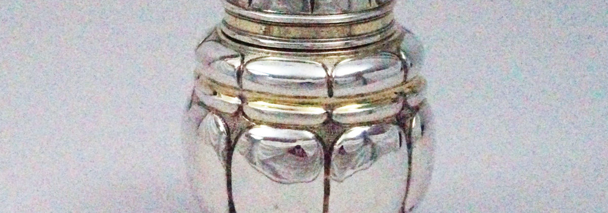 The border is finely engraved with scrolling foliage, supported by three seraphim feet. One food damaged