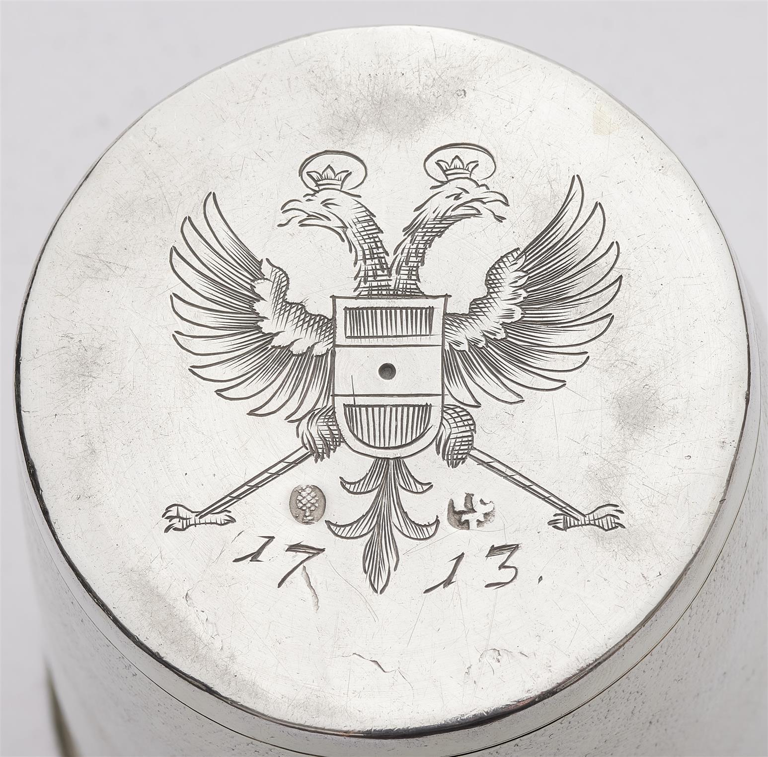Under the base, engraved with the Austrian double eagle, dated 1713.