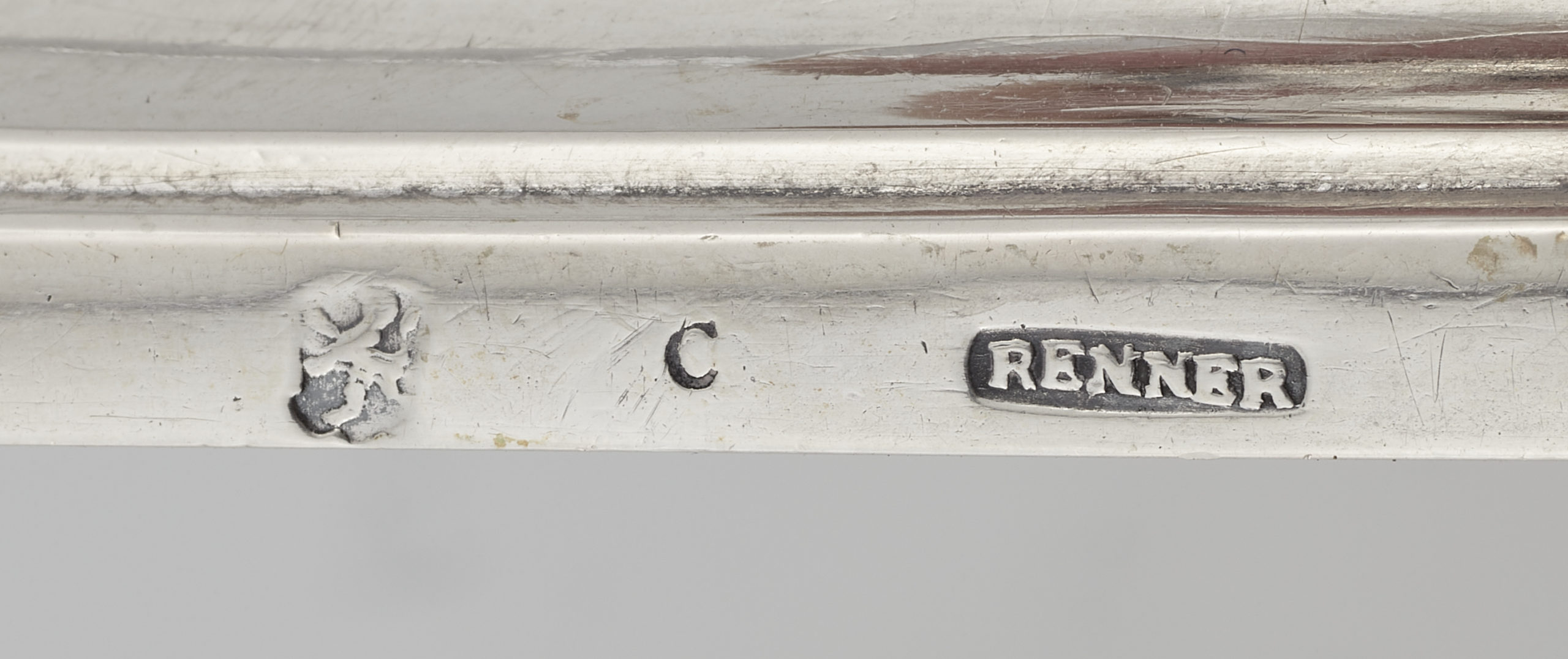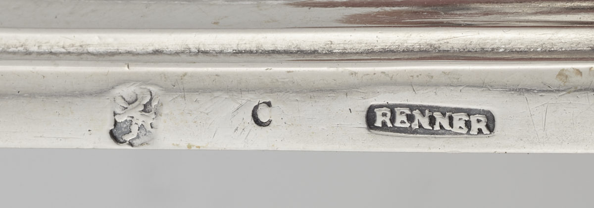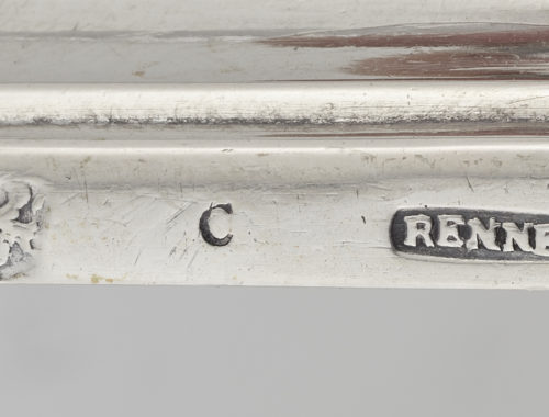 Scheffler mentions a pair of candlesticks of the same height with this maker’s mark in a private collection in Stockholm (1452b). Renner’s father, Johann Georg, is also a possible maker (cf. a pair of candlesticks in the English style with the date letter C and his maker’s mark IGR (Scheffler 1432c)).