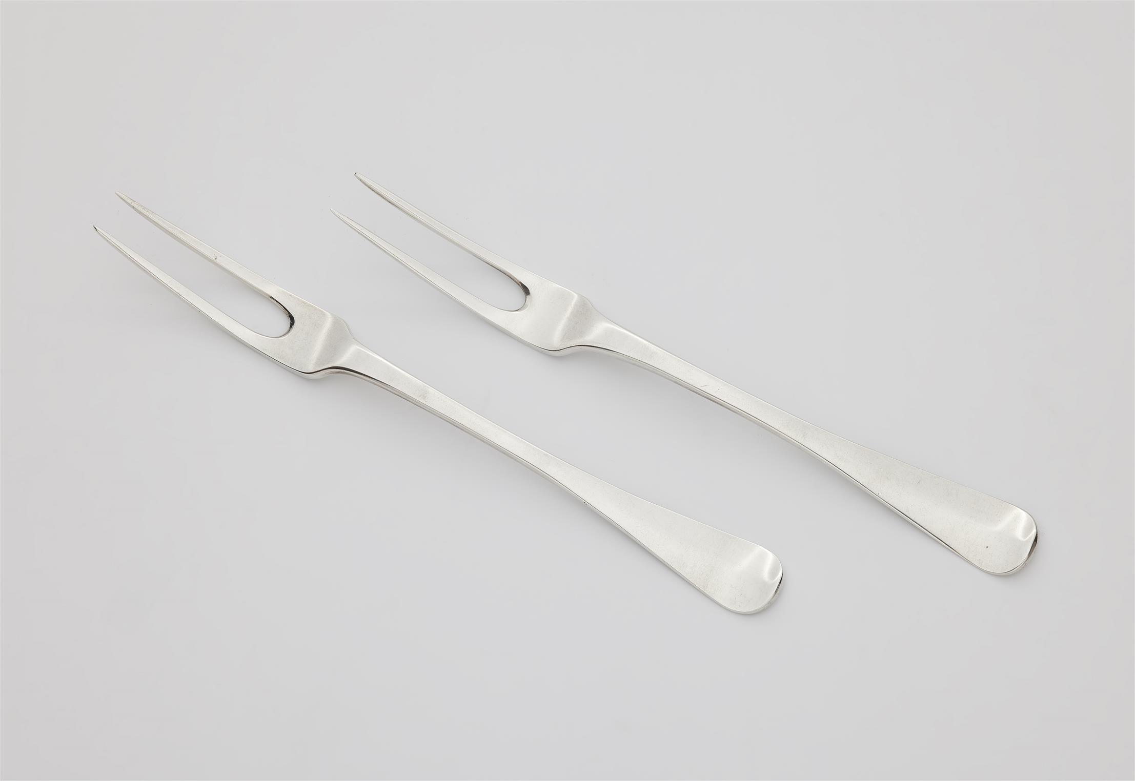 Antique silver cutlery sets consist of a knife, fork and spoon. The spoon is a universal tableware instrument, which was used constantly, in Europe and beyond. People continually had spoons with them in the early modern era. Likewise, the knife was a necessary tableware instrument, which was initially, and most commonly used for dividing food. The fork – part of Italian and French habits – became, in the eighteenth century, a symbol for luxury and culture among aristocrats. This became even more prominent, when the fork was made of silver. With the coming of the industrial era, the fork was imposed as a standard instrument of the table culture. Silver fork, knife and spoon (or the silver cutlery or silverware) are important parts of a set table.